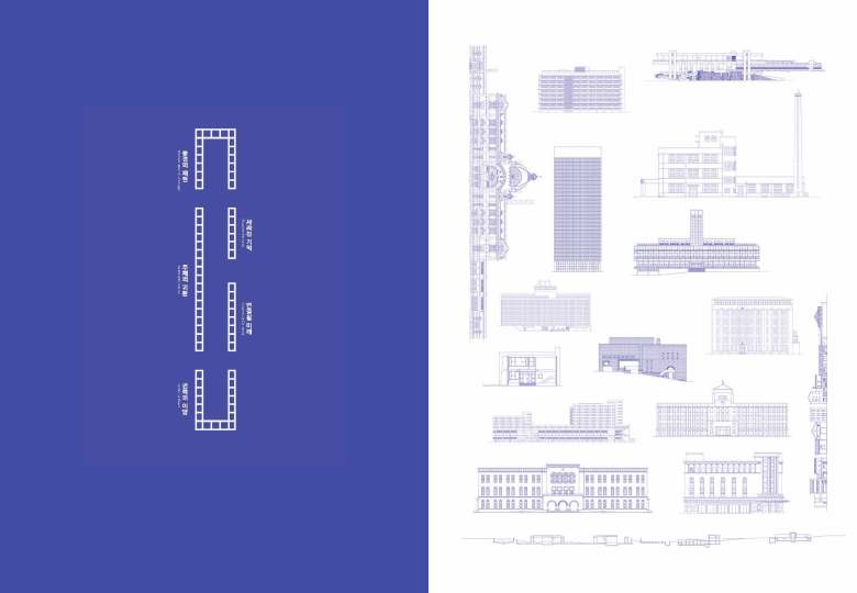 The introduction section draws upon the significant constructions in Korea’s modern architecture (after the Gabo Reform of 1896 to early 1970s) that were not consciously acknowledged in everyday life, as if to unfold a mural of an ancient tomb. It is a space that appeals to the memory connected with the architecture of the spectators and creates a touch point between their consciousness from a forgotten memory and architecture. Most architecture exhibitions choose a diachronic method that narrates story with historical sources. To overcome the limitation of this way, each building’s elevation was created into an art graphic in the view of how the public would see buildings in the city, and attached on the exposed concrete wall. In this way, modern architecture buildings making modern architecture history of Korea is gathered into a single space as a wall painting, and deliver the history to visitors through the wall.