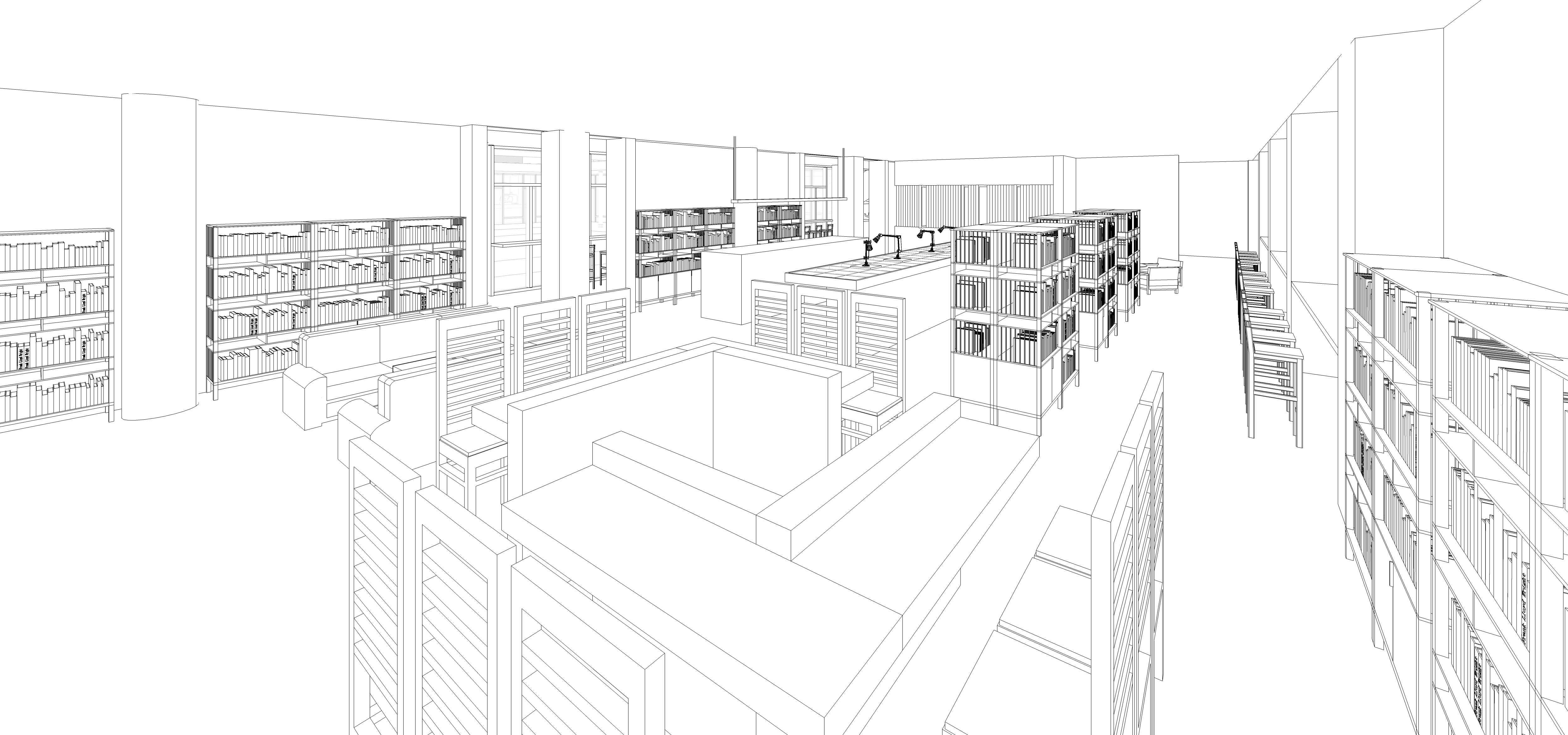 보존센터라는 전문성 강한 공간이 또 하나의 문화 공간이 되기 위해서는 문화 공간이 갖는 성격들이 공간 요소로써 인입과 분위기 연출이 따라주어야 한다. 아카이브적 성격이 강한 도서관은 전통 건축을 모티브로 한 가구 형식과 보존센터가 보유할수 있는 소재들의 작은 박물관의 기능을 연출적 기법으로 공간에 포함시켜 보존센터의 아우라가 깃든 공간에서 특별한 자료들을 만나게 한다.