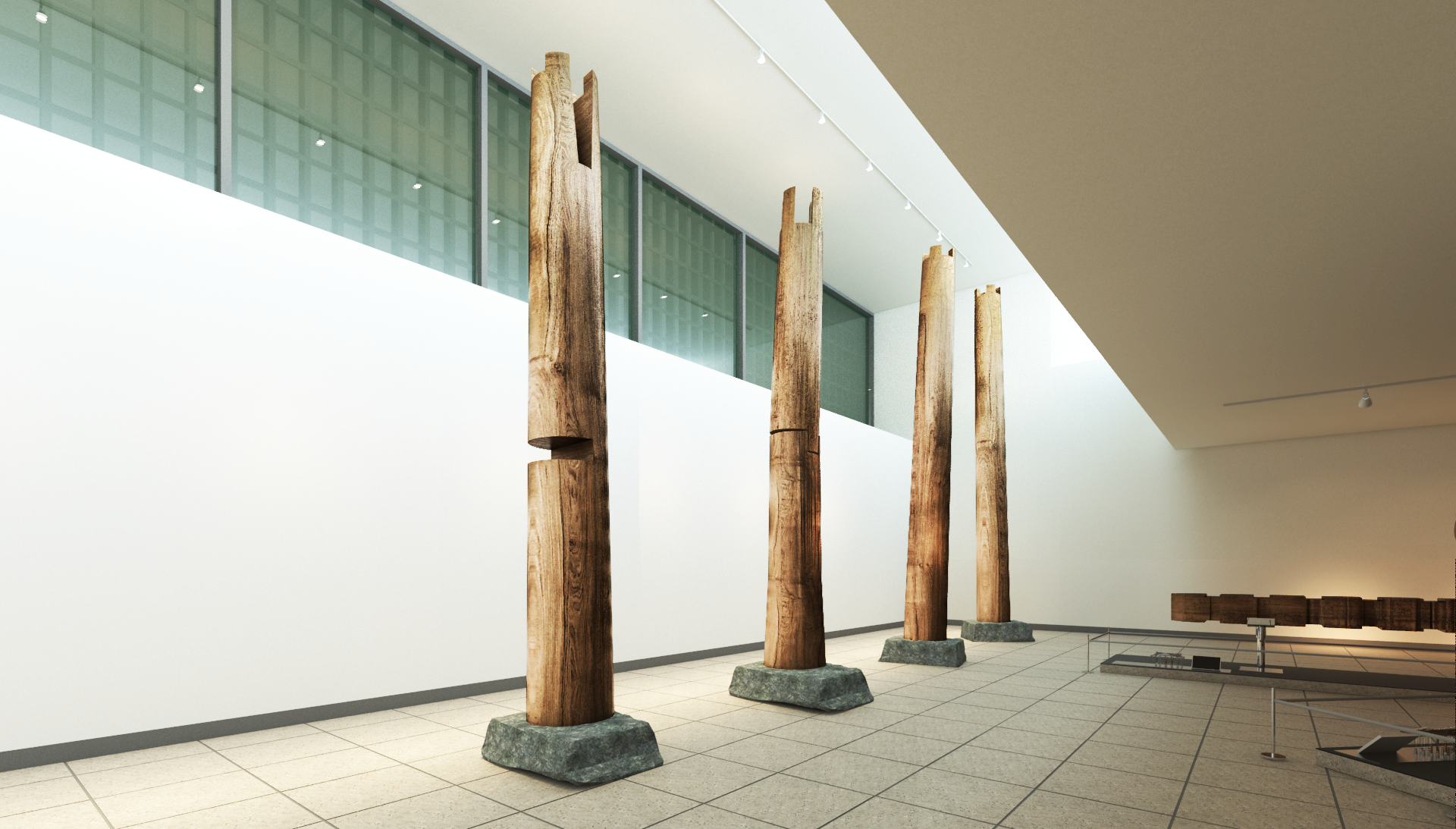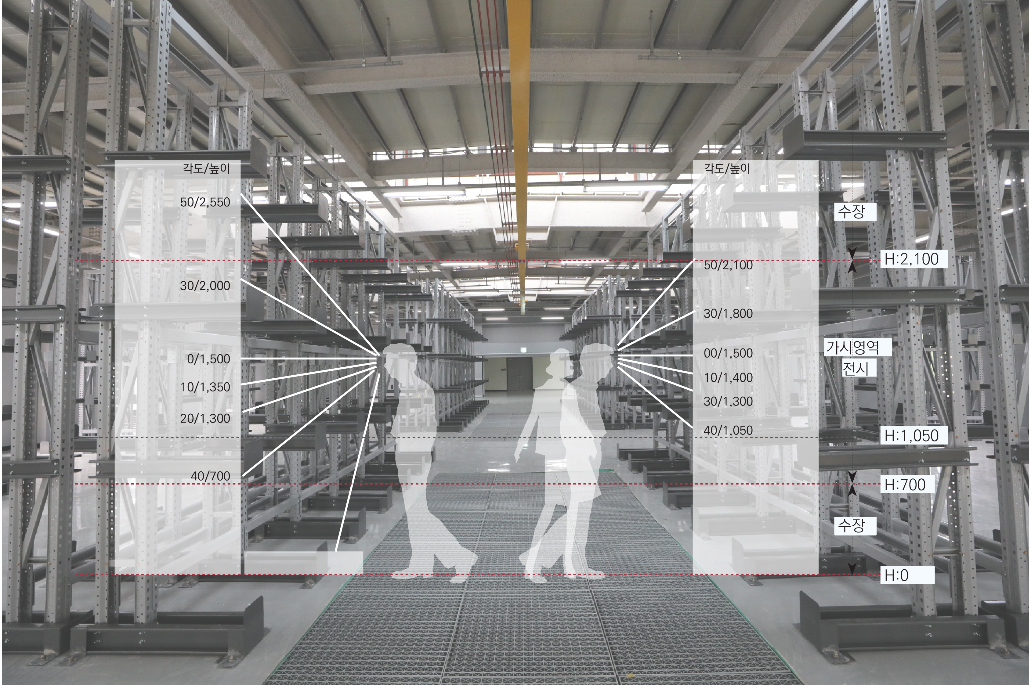 이제껏 볼 수 없었던 시점에서 부재를 바라보면, 그 생경함에 경외감이 작용하게 된다. 이런 시점의 전복을 통해 전시의 감동을 극대화한다.