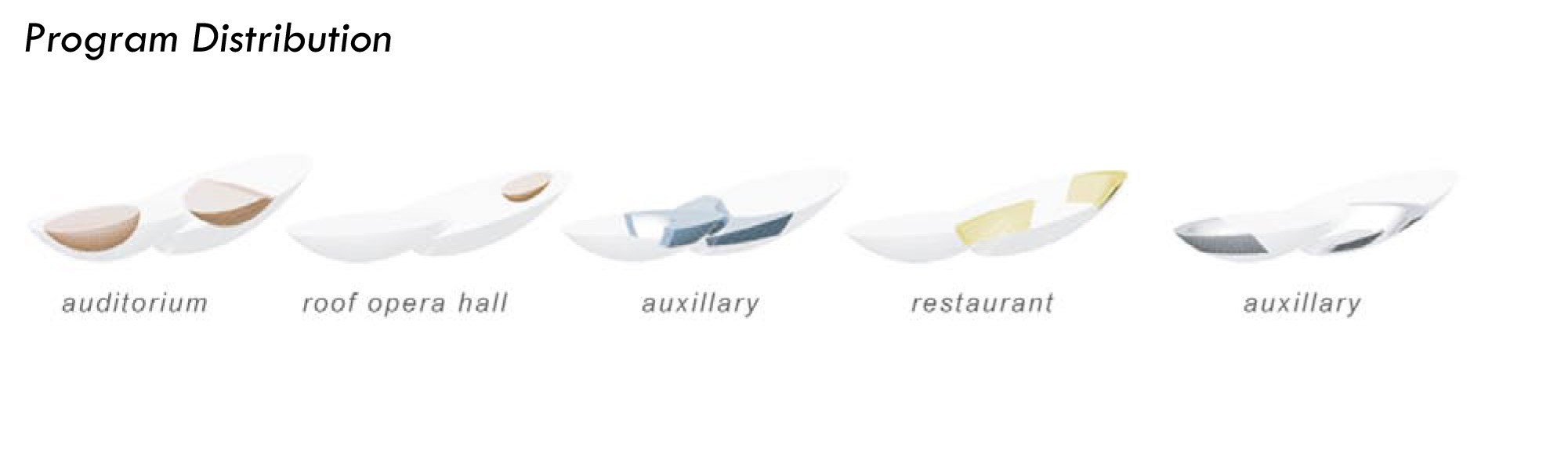 Based upon an intuition of the opera island generating a kind of musical vibration and changing the flow wave of the river, a concept of trembling become an overwhelmingly common design condition. The topography of ground, landscape element and even a drop of river flow operate as a tool of generator that enables gradual patterns of shaking to formulate tectonic configuration.