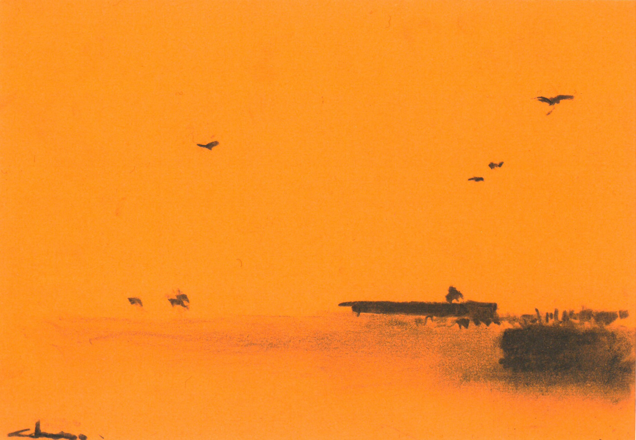 20×14 cm. charcoal on paper, 2015. “우리는 아주 단순하면서도 어설픈 행복의 이미지들로부터 위로 받을 수 있다.때로는 그것이 진부한 한 예일지 몰라도 여전히 소소하게 감동으로 작동하곤 한다.” “붉은 노을빛은 그 어떤 곳도 아름답게 와닿게 하는 마술이다.노을이 지는 풍경앞에서 사람들의 마음은 움직인다.노을이 뿜어내는 붉은 공기는 세상을 따뜻하게 감싸주고, 하루가 저물고 맞는 ‘쉼’의 시작이다.”