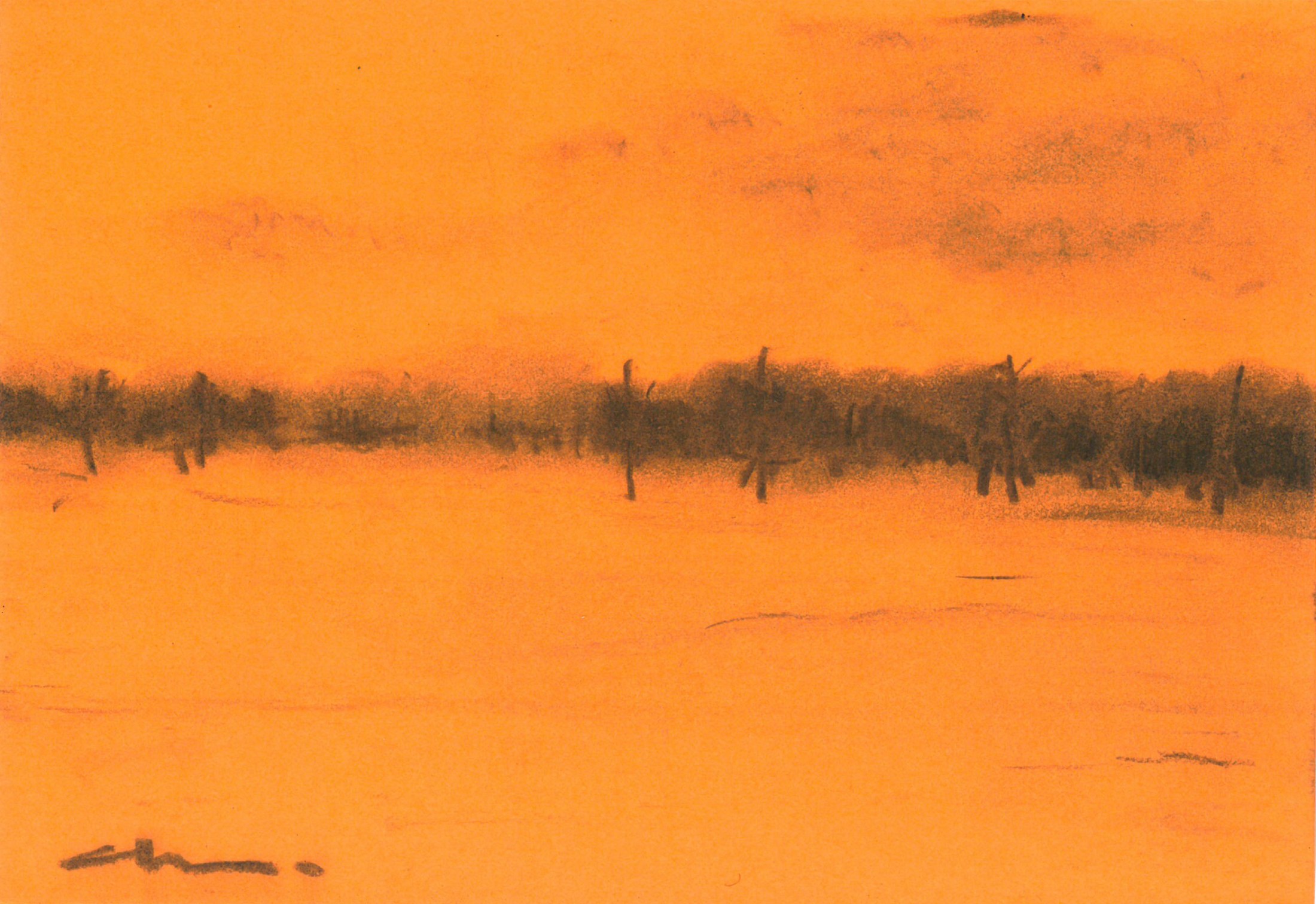 20×14 cm. charcoal on paper, 2017. “우리는 아주 단순하면서도 어설픈 행복의 이미지들로부터 위로 받을 수 있다.때로는 그것이 진부한 한 예일지 몰라도 여전히 소소하게 감동으로 작동하곤 한다.” “붉은 노을빛은 그 어떤 곳도 아름답게 와닿게 하는 마술이다.노을이 지는 풍경앞에서 사람들의 마음은 움직인다.노을이 뿜어내는 붉은 공기는 세상을 따뜻하게 감싸주고, 하루가 저물고 맞는 ‘쉼’의 시작이다.”