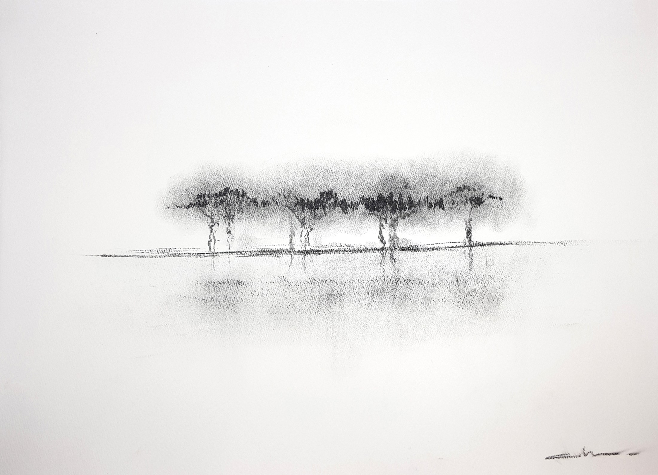 54×39 cm. charcoal on paper, 2016. 봄비가 내린다는 것은 얼었던 날씨가 풀렸다는 신호이다. 수많은 상념으로 새하얗게 새는 밤나는 그렇게 봄비를 기다렸다. 하늘의 총총 별의 개수만큼.