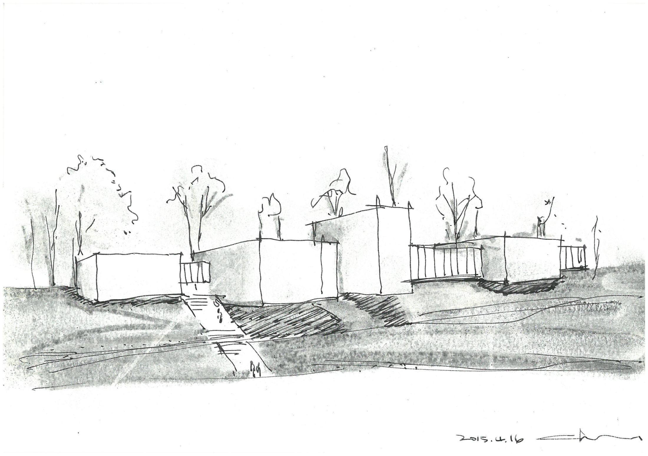 54×39 cm. charcoal on paper, 2016. 내 마음속 집은 이렇게 너른 평원에 낮고 기다란 집이다. 한국에 사는 한 이런 집에서 살 수 있는 일은 매우 실현되기 어려운 일이라는. 설혹 기다란 집을 지어도 주변에 평원이 아니라 종종종종 집이거나 산이거나 가득할 것이므로 그래서 더 마음에 간직하고 사는 나의 집이다.