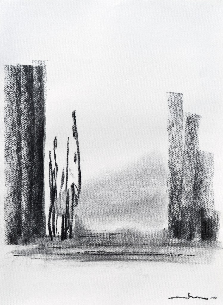 39×54 cm. charcoal on paper, 2016. 어느 날 늘 다니던 도로 정면에 산이 눈에 들어왔다. 마치 숲 사이에 거대한 수사슴을 마주친 듯한 순간처럼. 직진의 도로에 저 산이 있었던가? 내 눈을 의심하였다. 도심 한복판 깔려진 도로를 따라 달리는 우리는 주변에 있는 것들을 보이지 않는다. 땅만 쳐다보고 걷다가 쿵하고 무엇에 걸리기 전엔 아무것도 주변 것을 보지 못하는 […]